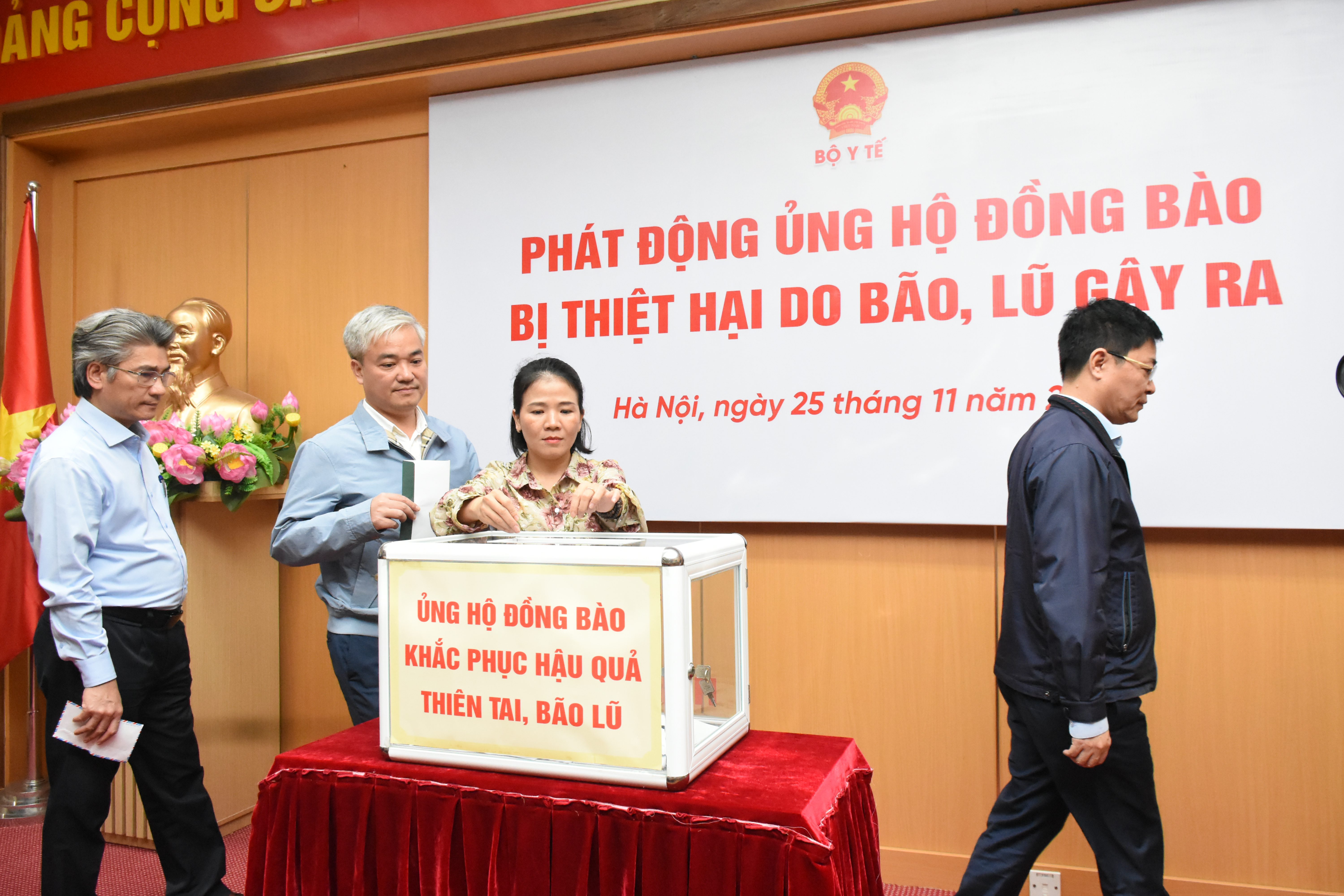 Bộ trưởng Bộ Y tế Đào Hồng Lan phát động ủng hộ đồng bào bị thiệt hại do bão, lũ gây ra.