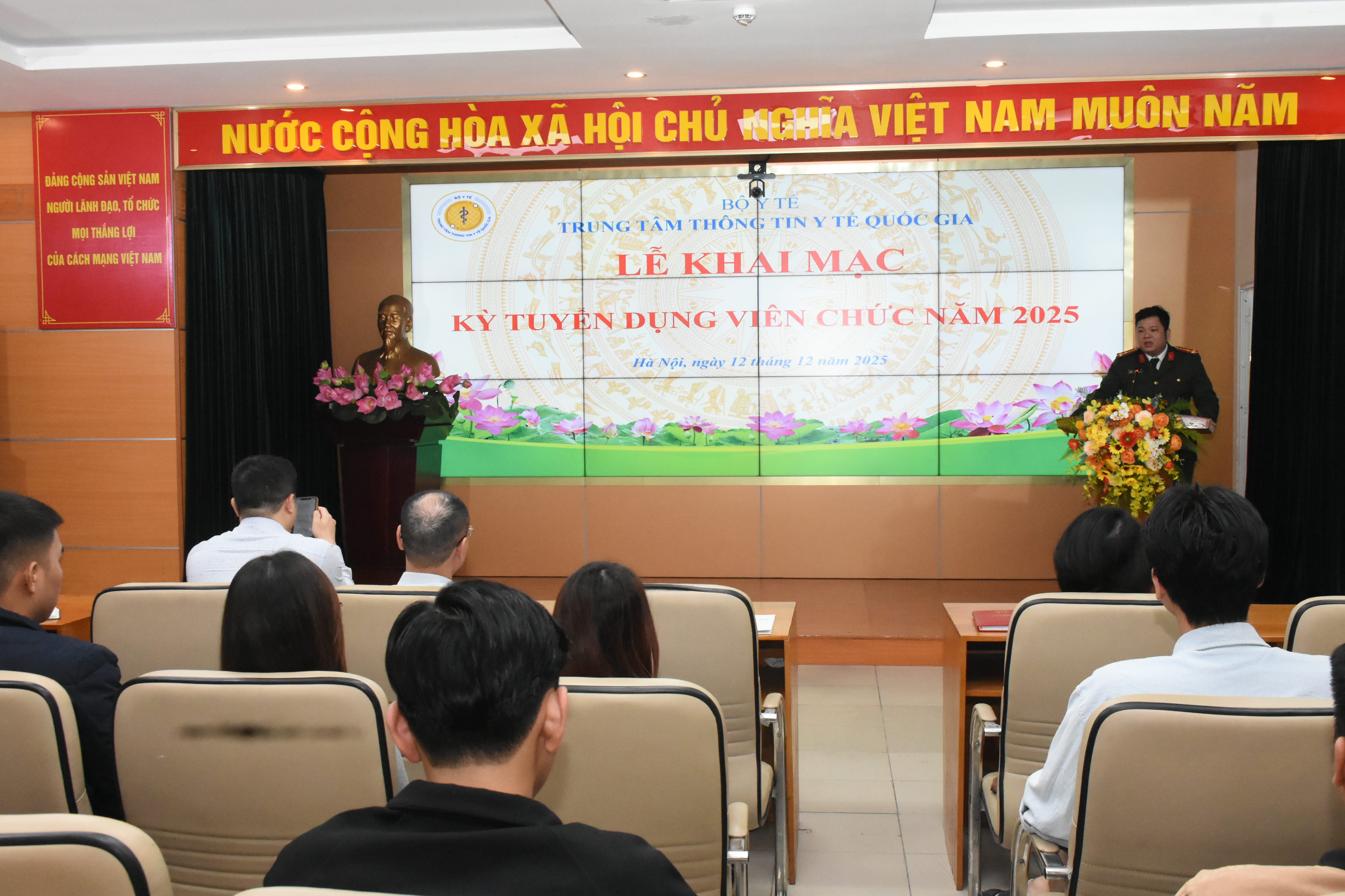 Ngày 12/12/2025, Trung tâm Thông tin Y tế Quốc gia đã tổ chức Lễ khai mạc kỳ xét tuyển viên chức năm 2025. Chương trình nhằm bảo đảm công tác tuyển dụng viên chức được thực hiện nghiêm túc, minh bạch, khách quan, tuyển chọn đúng người, đúng vị trí, phục vụ yêu cầu chuyển đổi số y tế trong giai đoạn mới. Kỳ thi diễn ra trong hai ngày 13 và 14 tháng 12 năm 2025.