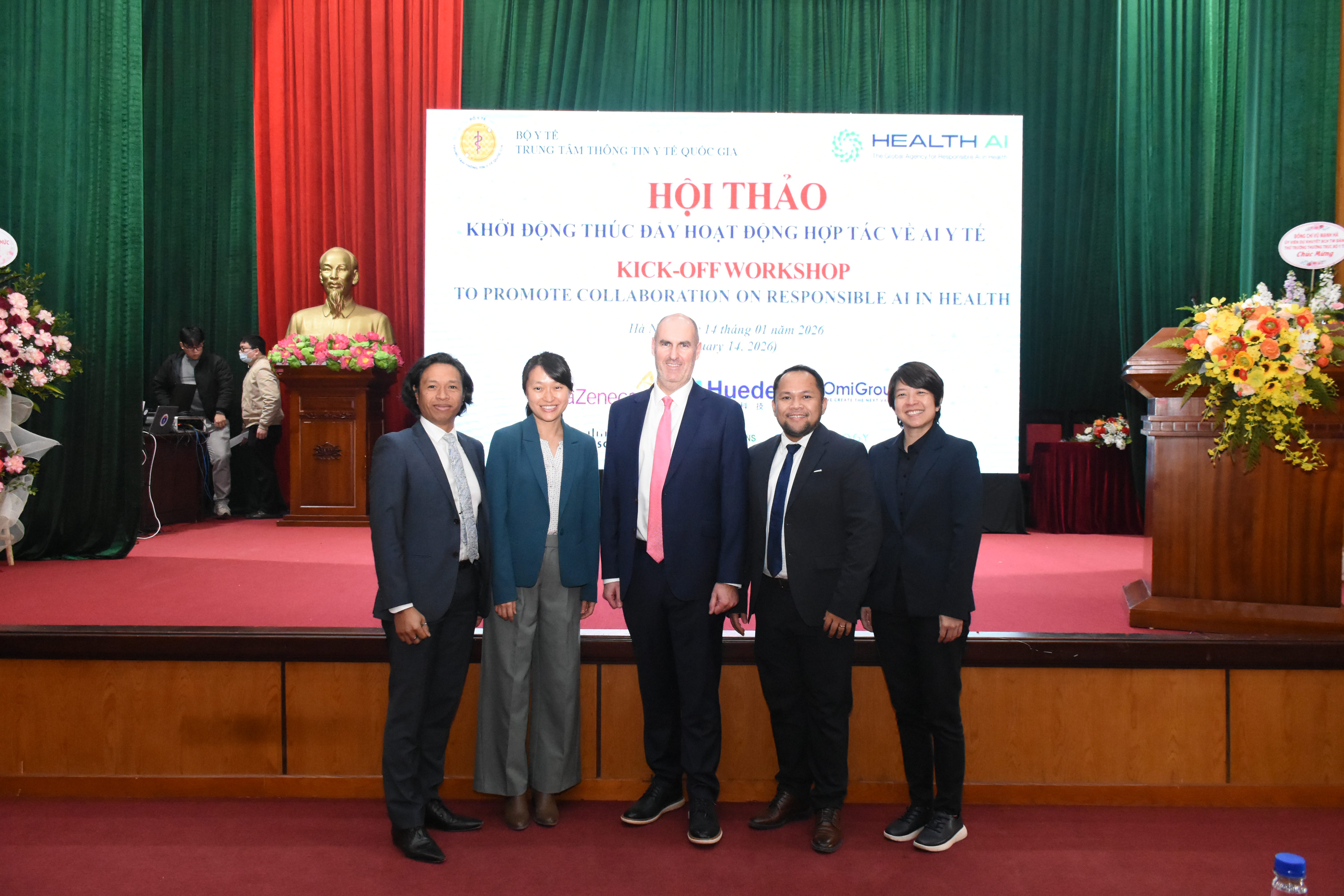 Các chuyên gia tham dự lớp Tập huấn (Từ trái qua phải): Ông Rado Andrian – Điều phối sáng kiến Health AI, bà Peiling Yap – Giám đốc khoa học Health AI, Ông Paul Campbell – Giám đốc pháp chế Health AI, ông Jhon Magkilat – Cố vấn Tri thức và Đào tạo Health AI, bà Yi-Roe Tan – Trưởng phụ trách triển khai quốc gia Health AI