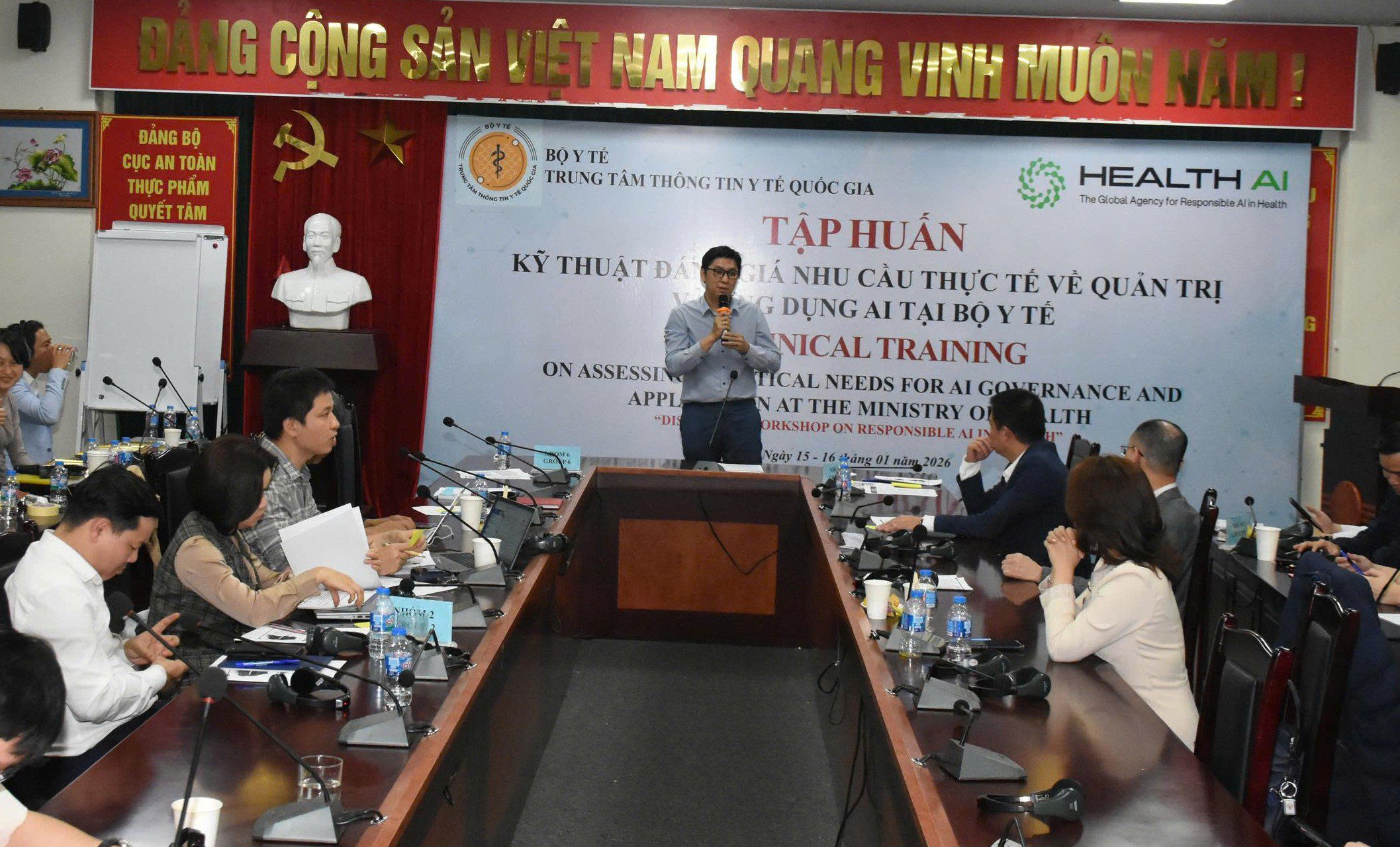 Trong bối cảnh chuyển đổi số đang diễn ra mạnh mẽ trên toàn cầu, trí tuệ nhân tạo (AI) ngày càng khẳng định vai trò quan trọng trong nâng cao hiệu quả quản lý, chất lượng dịch vụ và năng lực hệ thống y tế. Tại Việt Nam, việc nghiên cứu, đào tạo và ứng dụng AI trong lĩnh vực y tế không chỉ là yêu cầu mang tính xu thế, mà còn là nhiệm vụ gắn liền với mục tiêu phát triển bền vững, lấy người dân làm trung tâm. Nhằm tăng cường trao đổi, chia sẻ kinh nghiệm và thúc đẩy cách tiếp cận đồng bộ trong triển khai AI y tế, Trung tâm Thông tin y tế Quốc gia phối hợp với các đối tác tổ chức chương trình tập huấn chuyên đề “Thúc đẩy nghiên cứu, đào tạo và ứng dụng trí tuệ nhân tạo trong lĩnh vực y tế” trong 02 ngày 15-16/01/2026.