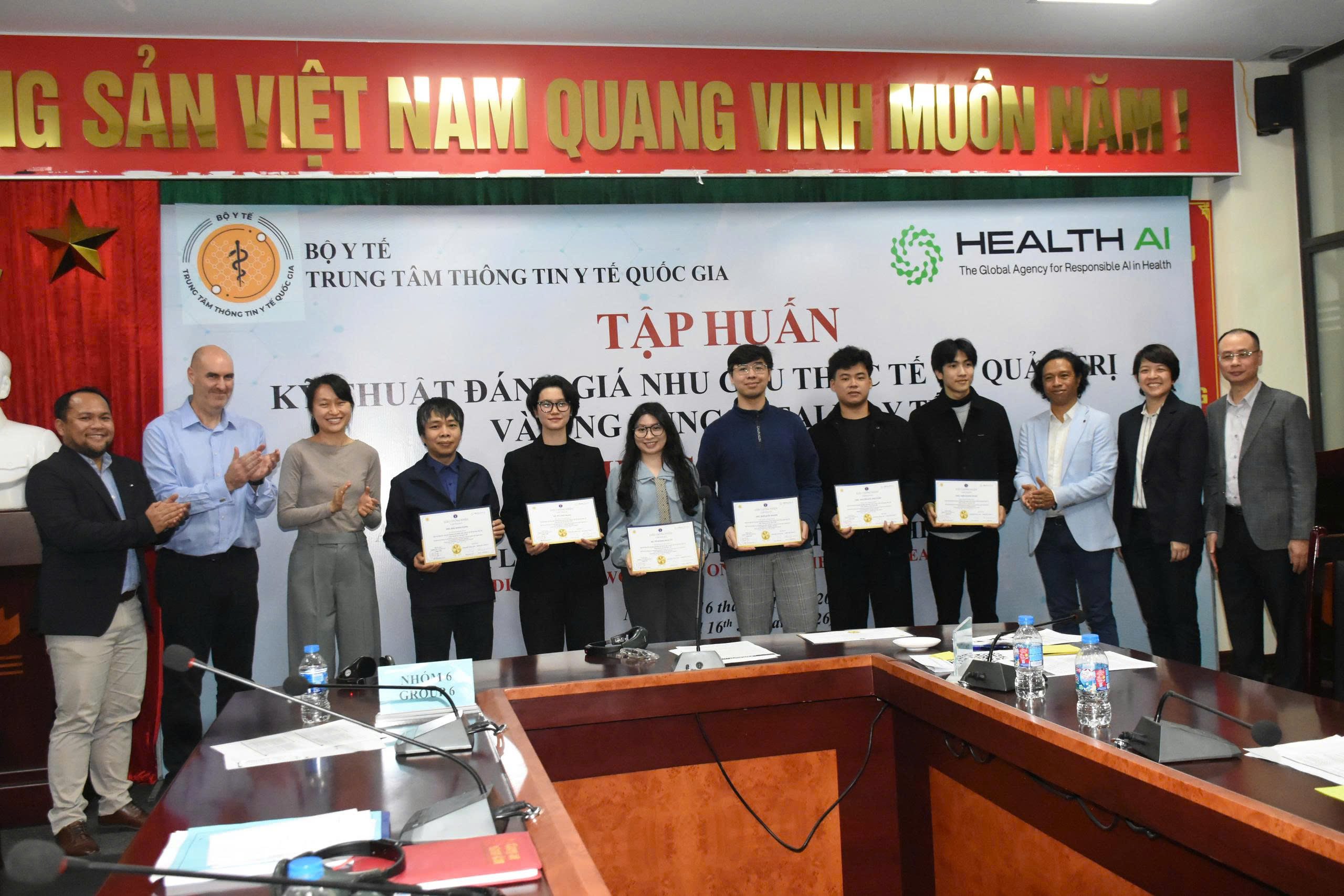 Ban Lãnh đạo Trung tâm, các chuyên gia Health AI và các học viên tham dự lớp tập huấn